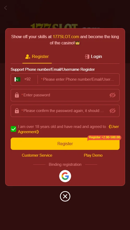 - Login to your 177Slot account using your phone number, email, or username.